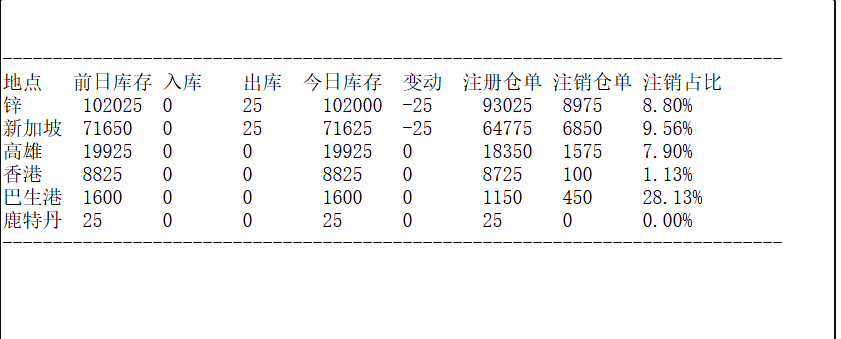 LME 2月18日锌库存分布情况