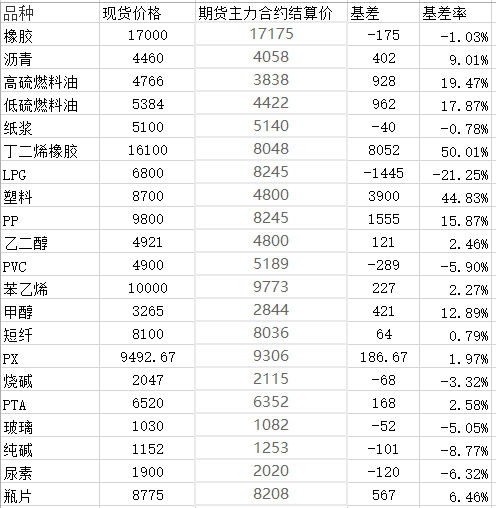 1、基差=现货价格-期货主力合约收盘价,基差率=基差/现货价格*100%2.品种 现货指的