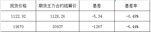 备注:1、基差=现货价格-期货主力合约结算价,基差率=基差/现货价格*100%