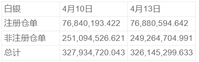 COMEX 4月13日白银库存统计