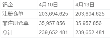 NYMEX 4月13日钯金库存统计